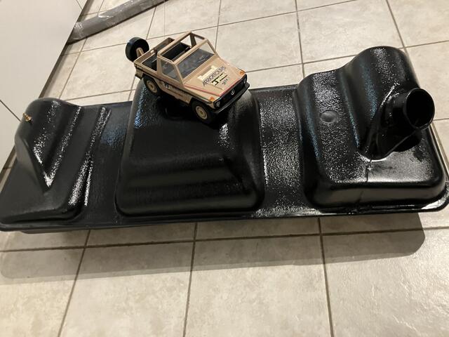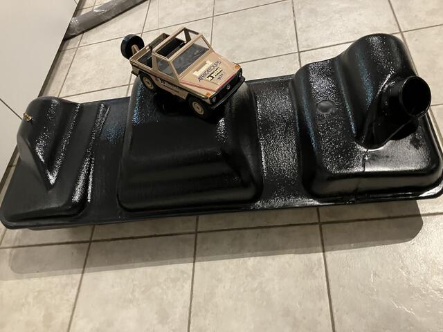 De tank hier in de foto's is van een benzineversie; vandaar aan de onderzijde van de tank de correcte uitsparing is voor de benzinepomp, en een benzinevlotter met schroefdraad i.p.v. klemkop bij de dieselversie vlotter.